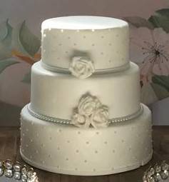 BOLO BRANCO COM FLORES ROSAS